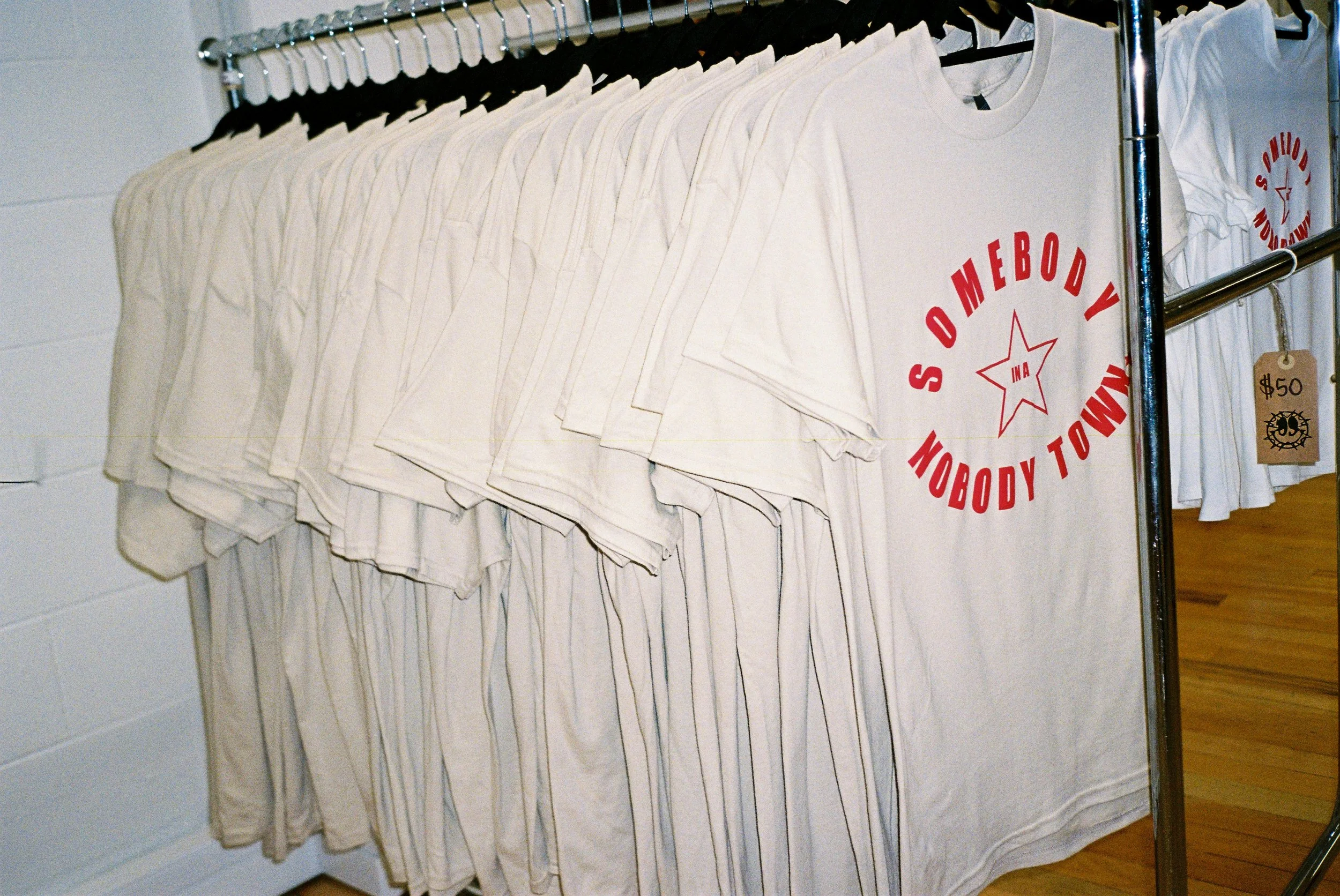 A pop-up cinema created at the back of the building showcased a short film also titled Somebody in a Nobody Town, made by Frandson and collaborators; and the walls of the main area featured striking oil portraits by Sonielle accompanying photographic portraits by recent Masters of Fine Arts graduate, Synthia, with some further one-off prints created by Frandson.