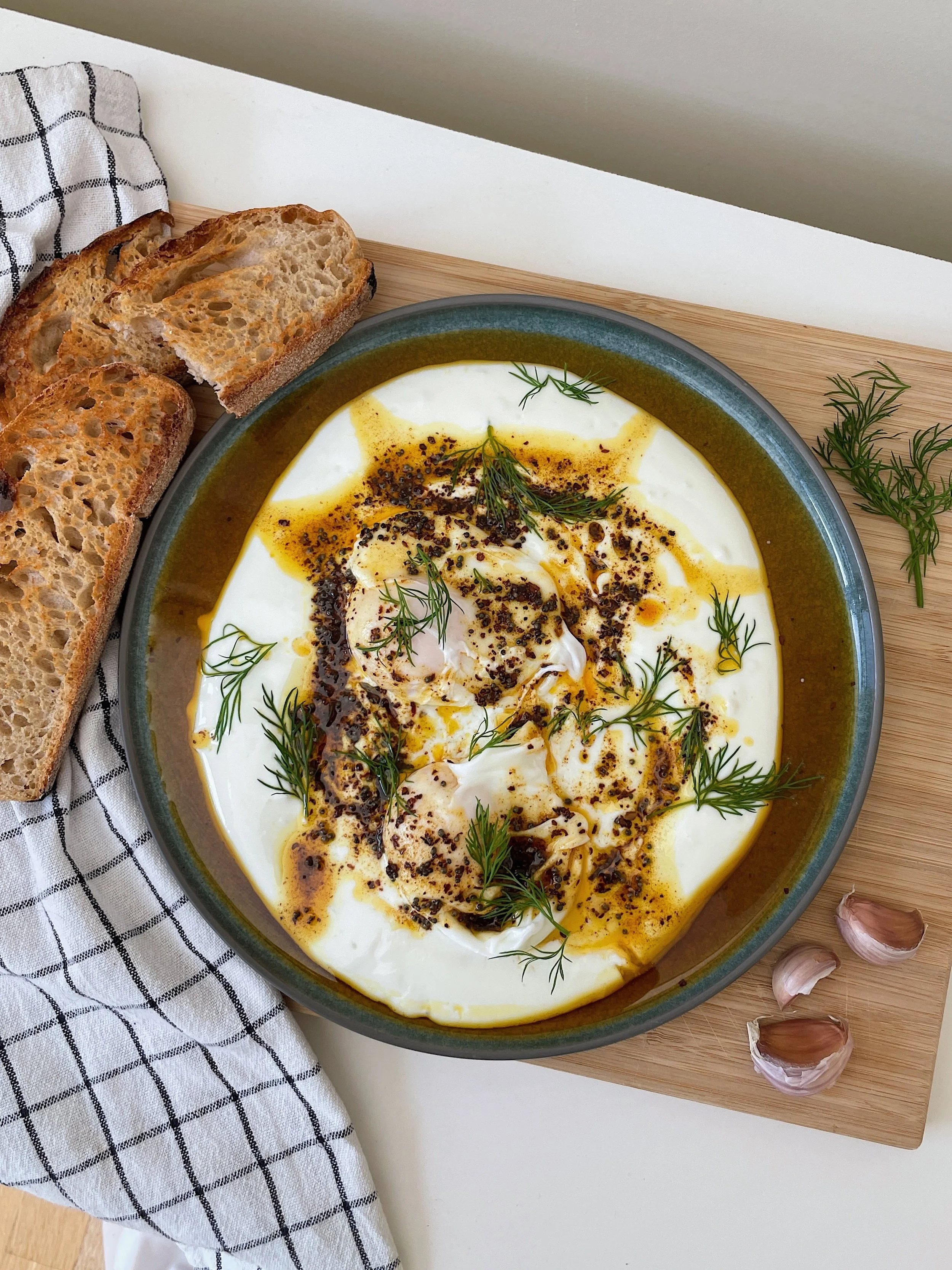 Nothing screams brunch like poached eggs. I’m a huge fan of Turkish cilbir eggs and especially miss the ones back home from Honey Bones in Grey Lynn. So I’ve decided to put my own spin on it by making it with tadka instead - which is a technique commonly used in Indian cooking to temper spices and add an extra layer of flavour and texture to many Indian dishes. This dish comes together in less than ten minutes and is the perfect addition to your Sunday brunch spread!