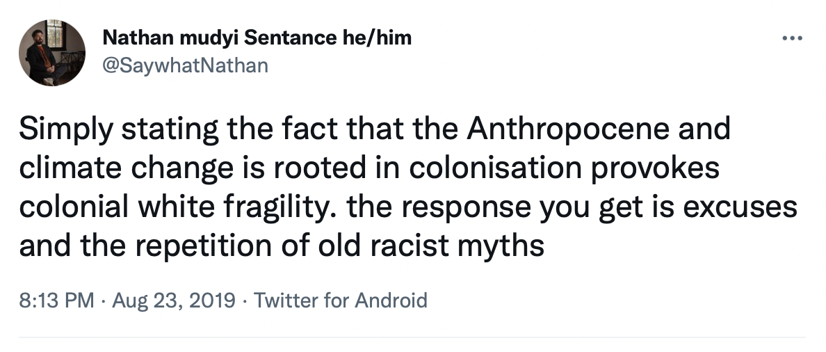“Mainstream conversations around climate change often ignore the crucial link between climate change and colonisation; that capitalism goes hand in hand with colonial expansion and white supremacy. ”
