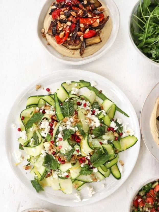 Assortment — Shaved Zucchini with Mint, Pomegranate and Feta Salad