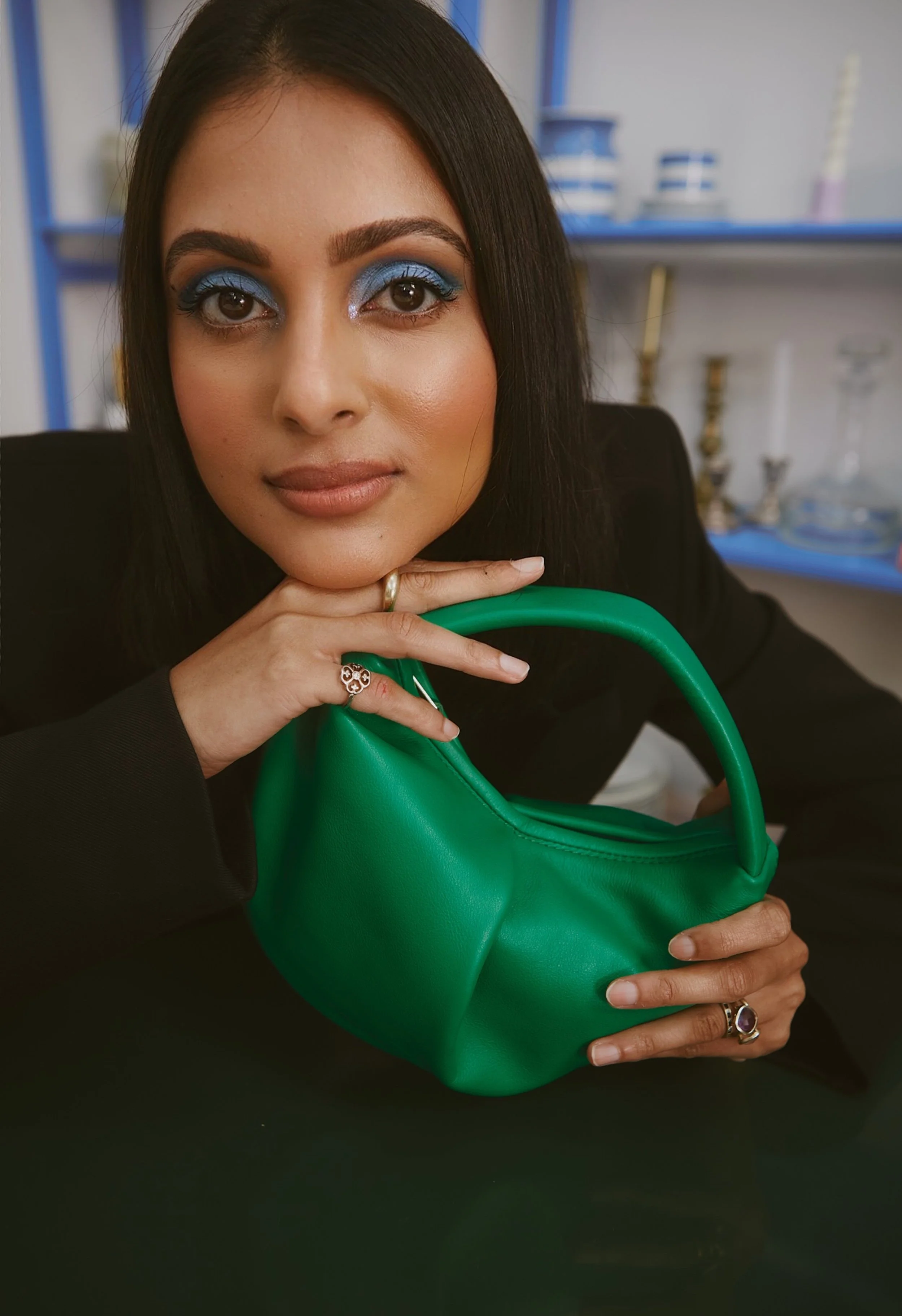 Nancy wears Maggie Marilyn cropped blazer with Georgia Jay bag