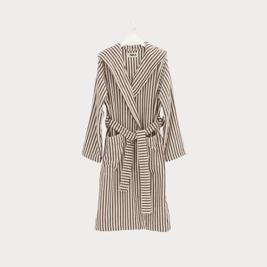 Tekla Hooded Bathrobe in Kodiak Stripe